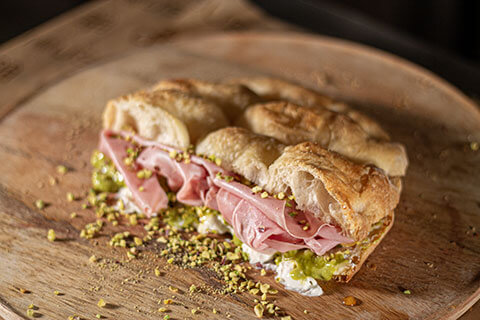 Typical dishes: Gourmet Focacce, Cold Cuts and Cheese Platters, Vegetarian Dishes